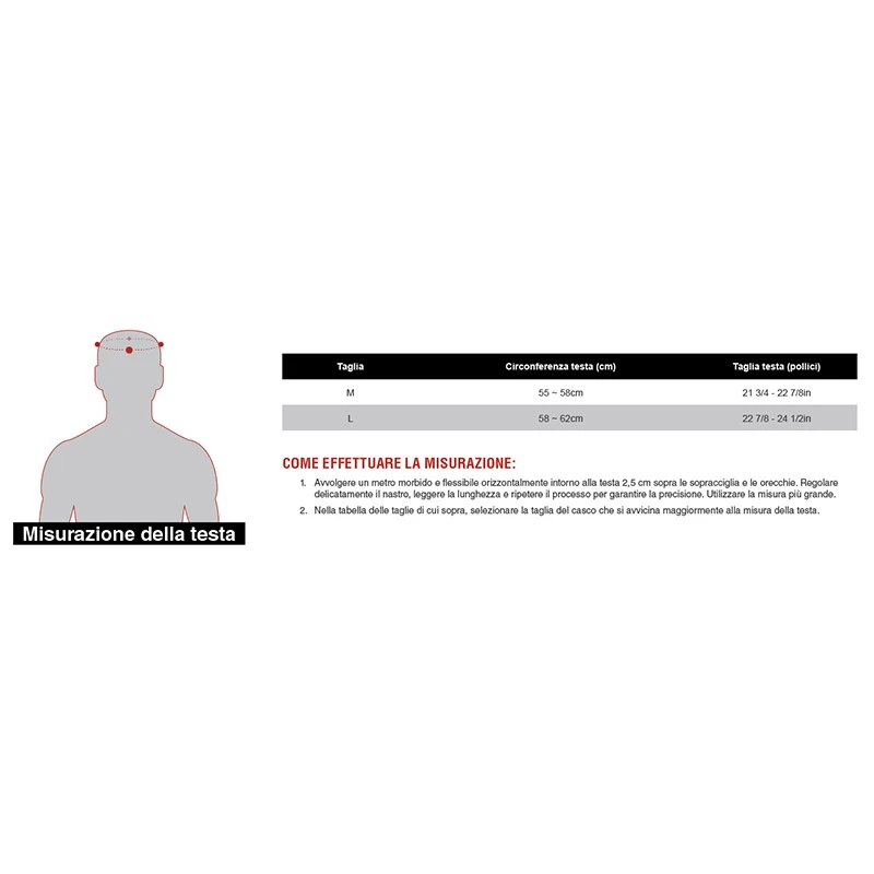 Disponibile nelle taglie M (55-58 cm) e L (59-62 cm).