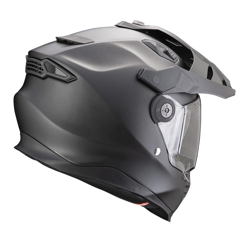 Il nuovissimo ADF-9000 Air è stato progettato per soddisfare le esigenze del rider avventuroso, raggiungendo il perfetto equilibrio tra qualità e vantaggi sia su strada che fuoristrada. Ogni casco è accuratamente realizzato a mano utilizzando la più recente tecnologia Ultra TCT, fornendo una maggiore resistenza e un peso più leggero. Il frontino Exolon è realizzato con uno speciale materiale resistente agli urti. Oltre al suo materiale unico, il frontino è stato progettato aerodinamicamente per quando si guida ad alte velocità. Se l’autostrada è il tuo percorso preferito, il frontino può essere facilmente rimosso allentando i bulloni direttamente con le mani. Se invece le tue avventure ti portano fuoristrada dove è meglio utilizzare la maschera cross, la visiera presenta un sistema che ti consente di toglierla facilmente e rapidamente senza l’utilizzo di attrezzi. L’ampia apertura consente una maggiore visione periferica ed è in grado di ospitare le maschere di dimensioni e marche diverse. Un’altra caratteristica unica presente solo nei caschi ScorpionEXO, è l’Airfit (sistema di gonfiaggio), che consente di personalizzare la vestibilità dei guanciali, aiuta a ridurre significativamente il rumore del vento e migliorare il fitting. Sia che vogliate viaggiare in tutto il mondo o che vogliate fare un viaggio breve, l’ADF-9000 Air è stato costruito per offrirvi il comfort, la sicurezza e la fiducia necessari per affrontare qualsiasi terreno, rendendolo un vero casco all-road per tutte le stagioni!