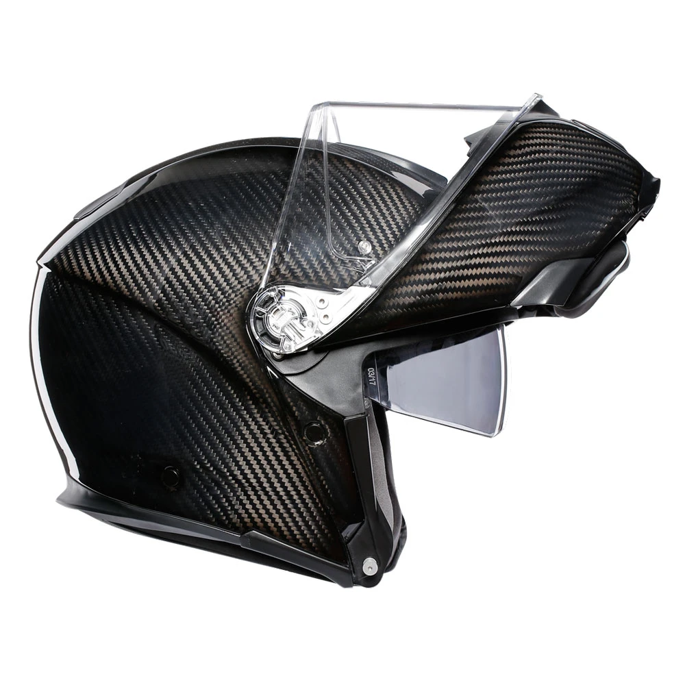LA FORMA E LA CALOTTA: Lo Sportmodular è realizzato interamente ed esclusivamente in carbonio. Le sue 3 misure di calotta e le 2 di mentoniera consentono di avere una forma molto compatta in relazione alle taglie. Nell’ottica della riduzione degli ingombri è stato miniaturizzato anche il meccanismo di apertura (70% rispetto al tradizionale), con benefici su peso, ingombri e sicurezza, dato che è sottratto meno spazio agli spessori delle calotte.