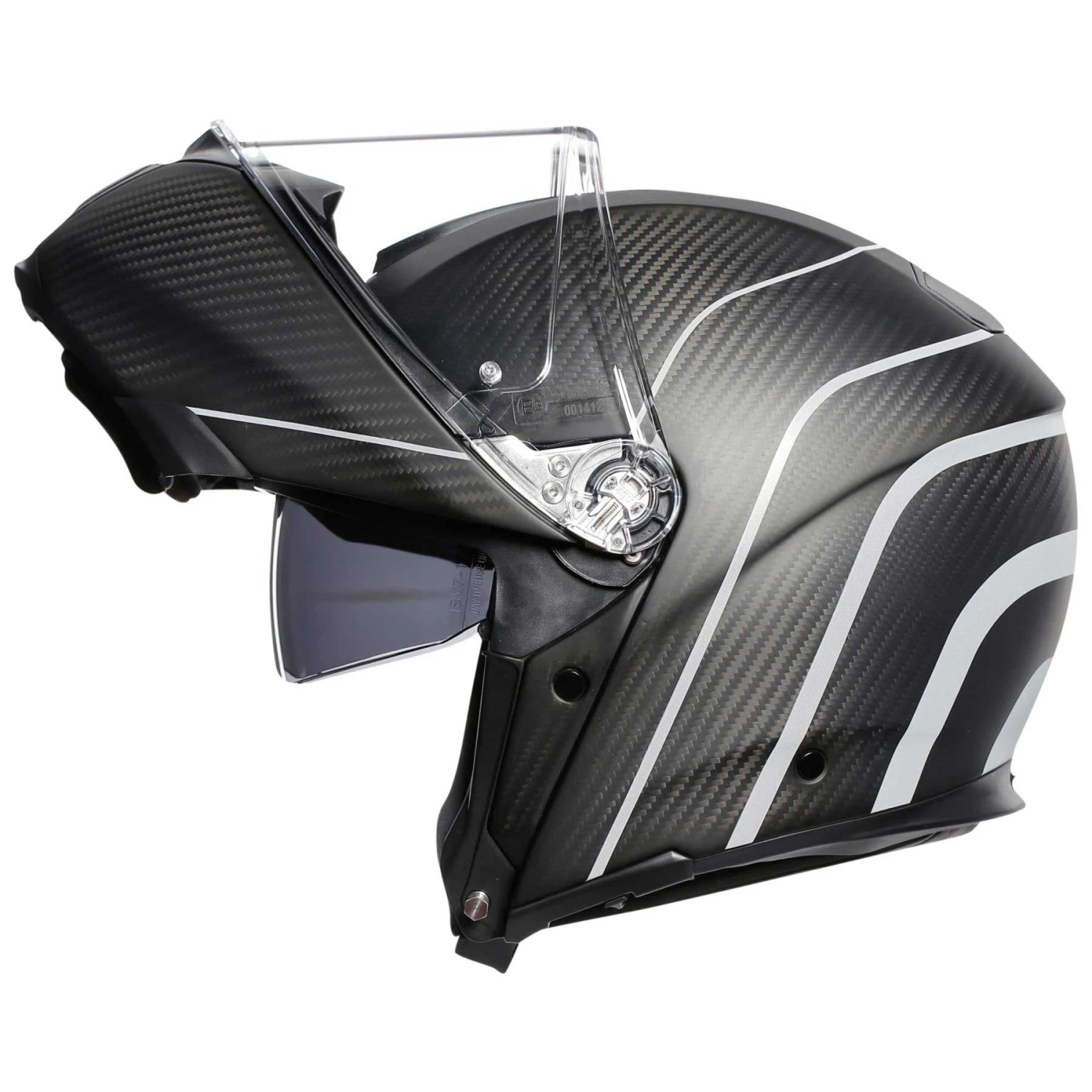 LA FORMA E LA CALOTTA: Lo Sportmodular è realizzato interamente ed esclusivamente in carbonio. Le sue 3 misure di calotta e le 2 di mentoniera consentono di avere una forma molto compatta in relazione alle taglie. Nell’ottica della riduzione degli ingombri è stato miniaturizzato anche il meccanismo di apertura (70% rispetto al tradizionale), con benefici su peso, ingombri e sicurezza, dato che è sottratto meno spazio agli spessori delle calotte.