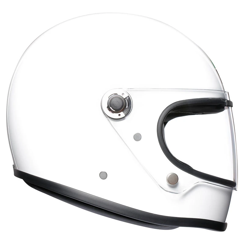Il Casco integrale X3000 di AGV coniuga comfort, protezione e ventilazione, elementi chiave che soddisfano i più alti standard di oggi. Questo casco è dedicato ad Agostini. Calotta in fibra di vetro. Calotte di diversa misura a seconda della taglia proposta. Struttura in EPS sviluppata in 3 formati. Visiera on-off Air Vent con canali di ventilazione nella calotta. Interni Premium smontabili e lavabili in vera pelle, tessuto scamosciato e logo ricamato. Visiera antigraffio con sistema di apertura micro-apertura. Sistema di ritenzione Doppia D