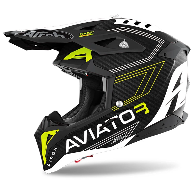 Raise the bar. Lasciarsi tutti dietro. Di nuovo. Il difficile non è vincere una volta, ma continuare a farlo. Aviator 3 alza il livello della competizione e ridefinisce gli standard di un casco offroad. La calotta, declinata nella versione Carbon 3K in esclusiva sulla grafica Primal, prevede per le altre varianti grafiche la nobile HPC Carbon. Ben 4 sono le misure della calotta esterna in entrambe le versioni, che è stata progettata avvalendosi della galleria del vento per ingegnerizzare al meglio forme e performance. Estrema attenzione è stata quindi dedicata all’aerodinamica, con l’obiettivo di rendere il casco stabile anche alle alte velocità , ed alla termodinamica, per ottimizzare la termoregolazione. La summa tecnologica di Airoh si condensa in questo nuovo prodotto, in cui sono profusi i sistemi AMS2 Plus (Airoh Multiaction Safety System Plus), AEFR (Airoh Emergency Fast Release) e AMLS (Airoh Magnetic Lining System) che si evolve, includendo anche i guanciali magnetici. Le 8 prese d’aria e gli spoiler con estrattori integrati rendono il fitting di Aviator 3 confortevole anche nelle condizioni di utilizzo più estreme, così come l’innovativo sistema idratazione AHS (Airoh Hydration System) integrato nell’EPS. Aviator 3. Senza limiti. Full Carbon 3K. HPC Carbon From 1290 g ±50 g (only for Primal graphic). From 1350 g ±50 g (other graphics) 4 shells: 1° XS-S, 2° M, 3° L, 4° XL-XXL.