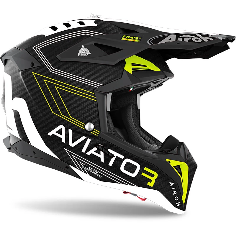 Fibra Casco Airoh Aviator 3 Primal Carbon Giallo Opaco