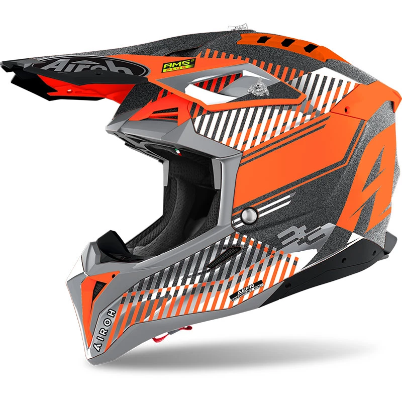 Raise the bar. Lasciarsi tutti dietro. Di nuovo. Il difficile non è vincere una volta, ma continuare a farlo. Aviator 3 alza il livello della competizione e ridefinisce gli standard di un casco offroad. La calotta, declinata nella versione Carbon 3K in esclusiva sulla grafica Primal, prevede per le altre varianti grafiche la nobile HPC Carbon. Ben 4 sono le misure della calotta esterna in entrambe le versioni, che è stata progettata avvalendosi della galleria del vento per ingegnerizzare al meglio forme e performance. Estrema attenzione è stata quindi dedicata all’aerodinamica, con l’obiettivo di rendere il casco stabile anche alle alte velocità , ed alla termodinamica, per ottimizzare la termoregolazione. La summa tecnologica di Airoh si condensa in questo nuovo prodotto, in cui sono profusi i sistemi AMS2 Plus (Airoh Multiaction Safety System Plus), AEFR (Airoh Emergency Fast Release) e AMLS (Airoh Magnetic Lining System) che si evolve, includendo anche i guanciali magnetici. Le 8 prese d’aria e gli spoiler con estrattori integrati rendono il fitting di Aviator 3 confortevole anche nelle condizioni di utilizzo più estreme, così come l’innovativo sistema idratazione AHS (Airoh Hydration System) integrato nell’EPS. Aviator 3. Senza limiti. Full Carbon 3K. HPC Carbon From 1290 g ±50 g (only for Primal graphic). From 1350 g ±50 g (other graphics) 4 shells: 1° XS-S, 2° M, 3° L, 4° XL-XXL.