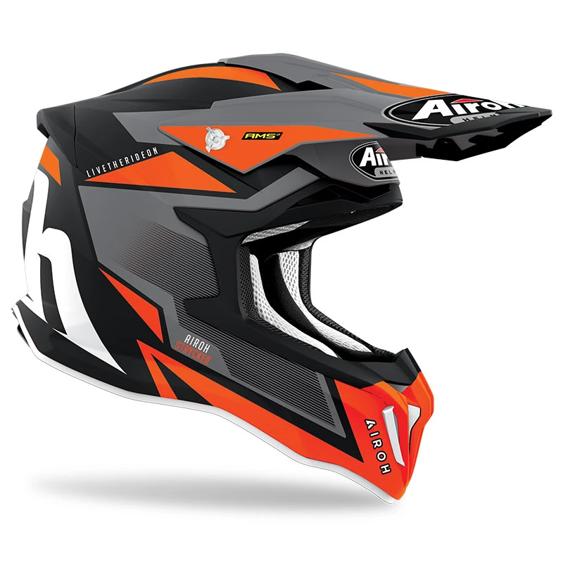 Crack shot. Non fa prigionieri il nuovo casco di Airoh per il segmento offroad. La calotta in HPC (High Performance Composite) che prevede 3 dimensioni differenti per assicurare la migliore vestibilità possibile, viene enfatizzata dagli interni anallergici, traspiranti e completamente sfoderabili muniti di sistema AEFR (Airoh Emergency Fast Release). Nessuno compromesso dunque in termini di sicurezza per Strycker, corredato dal rivoluzionario AMS2 (Airoh Multiaction Safety System) che permette la dissipazione dell’energia cinetica in caso di impatto angolare. Massima precisione nella progettazione delle 5 prese d’aria e degli estrattori posteriori, che si raccordano perfettamente ad una calotta disegnata nella galleria del vento di Airoh. From 1310 g ±50 g. 3 Calotte: 1° XS-S, 2° M, 3° L-XL-XXL. Sistema di sicurezza: Dd ring.
