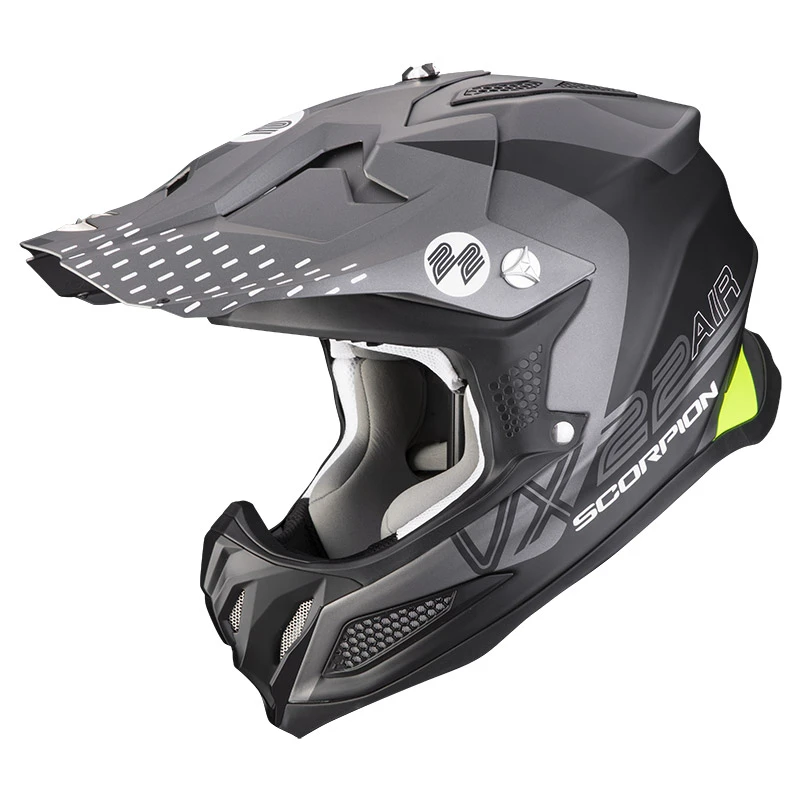 Successore del VX-21 Air, fra i caschi più longevi e di maggior successo della casa coreana fra quelli “OFF”, il casco VX-22 AIR adotta le ultimissime tecnologie made in Scorpion ed è stato progettato e realizzato per offrire le massime prestazioni e proteggere nelle condizioni estreme tipiche della guida in fuoristrada. Il VX-22 Air implementa la tecnologia MIPS® (Multi-Directional Impact Protection System) per uno straordinario balzo in avanti della sicurezza sulla scena offroad che potrà tradursi in una riduzione delle commozioni cerebrali da impatto contribuendo a preservare così il pilota da tanti e potenziali pericoli. La calotta in fibra Ultra TCT®, sviluppata in esclusiva da Scorpion Sports, il sistema EPS a doppia densità e la tecnologia MIPS® saranno, da questo momento e per tutti, il nuovo punto di riferimento in termini di protezione e affidabilità. L’esclusivo sistema di gonfiaggio dei guanciali AirFit® combinato con il rivestimento interno super traspirante e antibatterico KwickWick®III forniscono, insieme, un comfort, una vestibilità e un controllo dell’umidità mai sperimentati sino ad adesso.