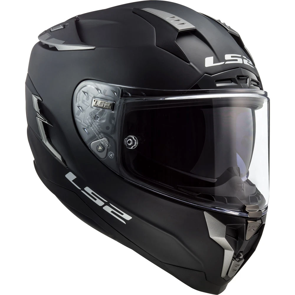 Le visiere LS2 sono realizzate in policarbonato “A Class” 3D otticamente corretto, un polimero space-age con elevata resistenza all’impatto, che evita distorsioni e offre la massima chiarezza. Per garantire una buona protezione, il casco deve adattarsi perfettamente alla testa, un’attenzione particolare deve essere rivolta al design della forma della conchiglia e ai materiali per ridurre al minimo gli effetti di un possibile impatto. È fondamentale per ottenere una perfetta aderenza alla testa dall’esterno verso l’interno, così come il guscio, la configurazione del rivestimento EPS, che deve corrispondere strettamente alla forma della testa umana. Certificato ECE 22.05. Peso 1385gr ± 50
