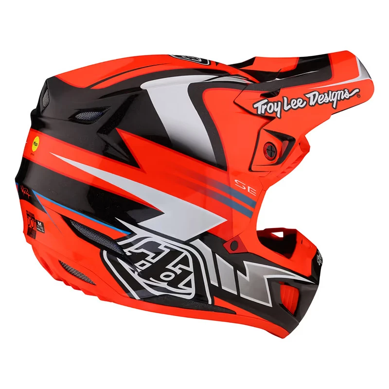 Velocità, Stile, Sicurezza, DESIGN: il nuovo casco moto SE5 Carbon di Troy Lee Designs continua a elevare gli standard del settore nella tecnologia dei caschi. Testati e sviluppati dai migliori atleti mondiali dei team motocross, i nuovi caschi MX SE5 Carbon si caratterizzano per una calotta leggera e resistente in fibra di carbonio, per un nuovo sistema di ventilazione che assicura il massimo comfort al pilota grazie alle lamelle laterali sulla mentoniera, e per il Collarbone Mitigation System, l’innovativo sistema di protezione della clavicola in EPP (polipropilene espanso) integrato nella parte bassa del casco che protegge la clavicola e la parte alta della spalla e propaga la forza dell’impatto.