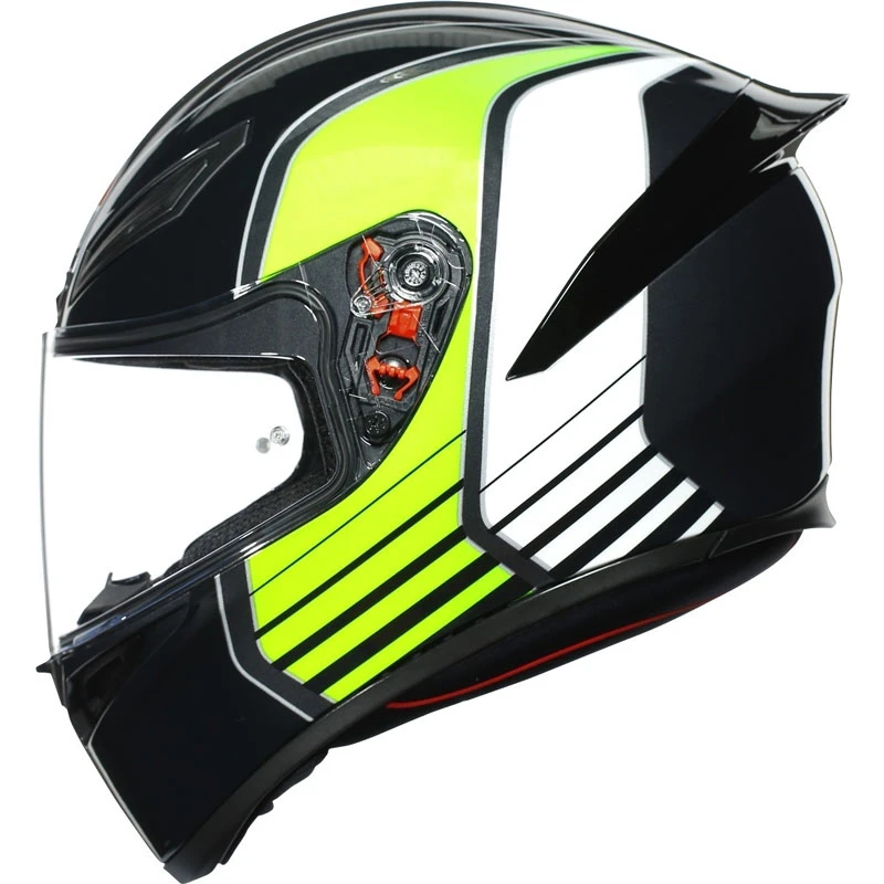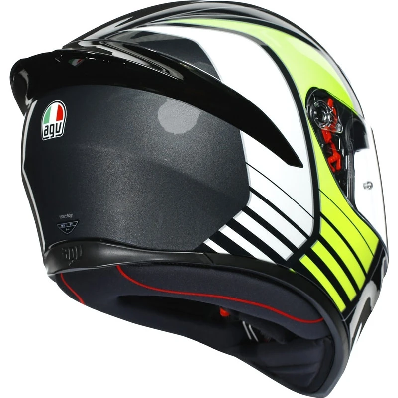 Casco integrale leggero e confortevole, con visiera chiara antigraffio e predisposizione per lente pinlock, chiusura con fibbia a doppio anello. Casco integrale Agv offre un ottimo rapporto qualità prezzo. Leggero, comodo ed ergonomico, dispone di visiera chiara antigraffio con predisposizione per Pinlock, ottimo sistema di ventilazione per offrire la giusta areazione all’interno del casco. LE caratteristiche del casco si completano con una pratica e sicura chiusura a doppio anello. Calotta in termoplastica HIGH RESISTANT. Stile racing. Il casco è prodotto con calotte di diversa misura a seconda della taglia proposta e permette così di offrire una perfetta proporzione tra il volume del casco e la taglia del motociclista, mantenendo inalterato il grado di protezione e sicurezza. Profilo sicuro previene lesioni alla clavicola. Con Visiera Chiara antigraffio. Predisposizione per lente Pinlock. Ampio campo visivo orizzontale e verticale. Spoiler aerodinamico ottimizzato per la posizione racing, testato nella galleria del vento. Ottimo sistema di ventilazione. Prese d’aria sulla mentoniera. Estrattori posteriori. Chiusura Doppia D. Peso: 1490 g