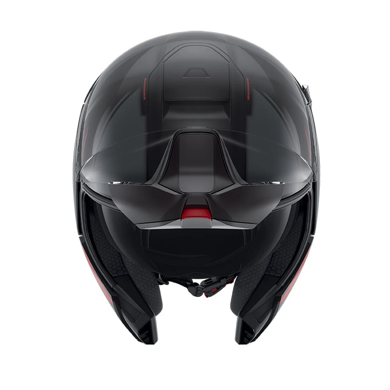 L’EVOJET si ispira ai codici della mobilità urbana: innovazione, tecnologia ed eleganza. Questo nuovissimo concetto SHARK soddisfa le esigenze degli utilizzatori urbani ed extraurbani che vogliono usufruire di un casco sicuro, capace di riunire i vantaggi di un jet, un modulare e un integrale. Il suo look raffinato e le sue finiture bicolori lo rendono il casco tendenza e intramontabile per antonomasia. Pratico e confortevole con la sua doppia omologazione jet e integrale, offre un incredibile campo visivo associato a una sensazione di leggerezza che darà l’impressione di non indossare nessun casco. L’innovazione principale dell’EVOJET risiede nella sua visiera collegata alla mentoniera che gli offre, in posizione chiusa, una superficie di visiera eccezionale e un campo visivo panoramico. Ultra pratico, il passaggio dalla posizione jet a integrale si effettua facilmente, con una sola mano. Il suo sistema di blocco della mentoniera, basato su un dispositivo di aggancio sicuro, permette di ottenere un livello di protezione premium. Grazie alla sua struttura EPS multi-densità, che offre un assorbimento ottimale degli urti, l’utilizzatore può guidare in tutta sicurezza, con il casco in posizione aperta o chiusa. Al fine di offrire una qualità ottica eccezionale, la visiera dell’EVOJET è stata ideata in classe ottica 1 a spessore variabile, in modo da eliminare gli effetti di distorsione visiva, quale che sia l’angolo di visione. La visiera beneficia inoltre di un trattamento antigraffi e anti-appannamento. Il suo sistema di aerazione è stato ottimizzato per assicurare un flusso d’aria continuo durante l’utilizzo. La mentoniera è munita di un’aerazione che distribuisce l’aria lungo la visiera. Il design innovativo dell’EVOJET è stato pensato sin nei minimi dettagli: tutta la meccanica è stata accuratamente nascosta dietro i supporti laterali, per un casco dallo stile essenziale e tendenza.