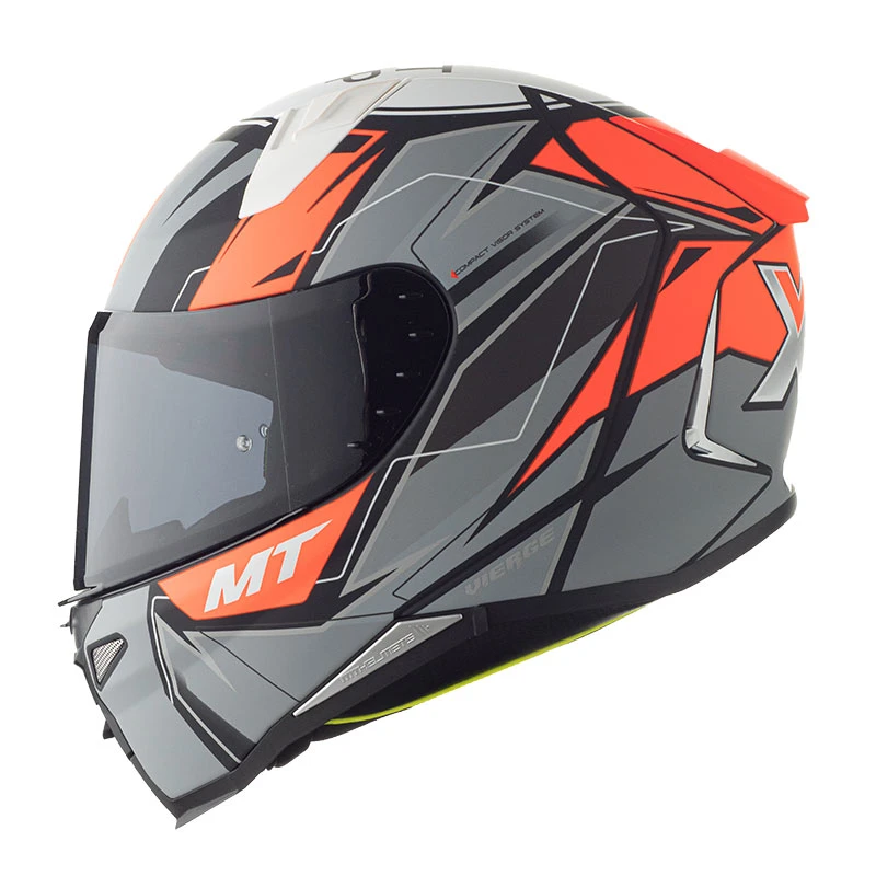 Visiera anti graffio in policarbonato dello spessore di 2,2 mm con sistema di sgancio rapido, meccanismo pivotante e sistema bloccante.