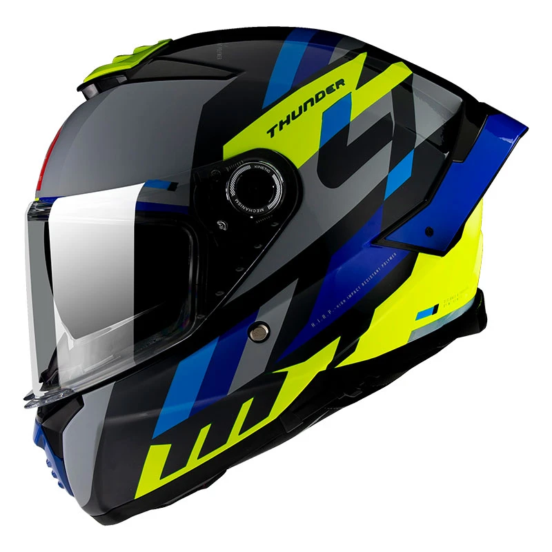 Un sistema progettato internamente dal team di ingegneri di MT Helmets e che per primo arriva sul mercato con il Thunder 4 SV, il primo casco dotato di questa tecnologia. Questo sistema, brevettato da MT Helmets, permette al pilota di fissare/staccare la visiera in modo molto rapido e confortevole senza dover togliere il casco.