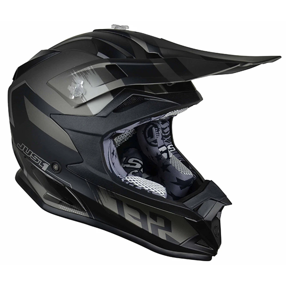 Just1 J32 casco è stato sviluppato con l’obiettivo primario di sicurezza e comfort per il pilota. Durante la fase di progettazione, il casco è stato progettato dall’interno in modo da avere il miglior sistema di ventilazione possibile e radicale. Realizzato in resina termoplastica di alta qualità. Sistema di ventilazione d’aria massiccia e multipla. Rivestimenti interni totalmente sfoderabili e lavabili. Extra spessore doppio anello di fissaggio D. J. 1. E. R emergenza guancia sistema di rimozione. Brace collo pronto pro_le. Schermi di sfiato in metallo di alta qualità ECE 22,05 omologato/dot.