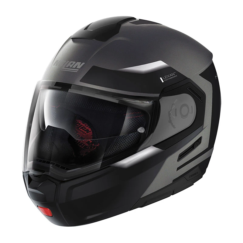È il nuovo apribile entry-level di Nolan. Si caratterizza per il design solido e compatto e per la buona dotazione tecnica. Doppia omologazione P/J, visiera ultrawide, schermo parasole VPS (regolabile in svariate posizioni), sistema di ventilazione superiore AirBooster Technology, esclusivo sistema di apertura della mentoniera con meccanismo a doppia azione, sistema di ritenzione con regolazione micrometrica a doppia leva Microlock2 e predisposizione per il sistema di comunicazione N-Com fanno di N90-3 un apribile interessante in ambito sia scooteristico sia motociclistico.
