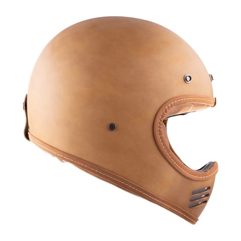 Gli interni richiamano il sapore retrò degli esterni, e sono costituiti da tessuti resi anallergici dal trattamento Sanitized e traspiranti. Le rifiniture sono in pelle sintetica dall’effetto invecchiato, che rispecchiano perfettamente l’anima vintage di questo casco e ne completano il design retrò, e sono facilmente lavabili.