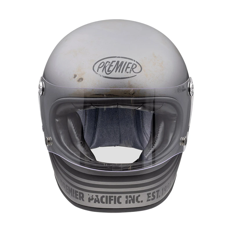 Trophy riprende lo stile e le forme dei caschi degli anni 70, ma è conforme ai moderni standard di sicurezza. Ha la calotta esterna stampata in una struttura multi assiale denominata DCA e composta da carbonio, dyneema e fibre aramidiche, amalgamate con resina epossidica. Un mix di fibre leggere e resistenti che contribuiscono a rendere Trophy robusto ma confortevole. La calotta interna è in eps ed è stampata a densità differenziata, per un il miglior assorbimento della forza generata da un impatto. Anche la visiera, pur essendo identica a quelle utilizzate dai campioni del passato, è omologata e dotata del trattamento antigraffio che garantisce sempre un ottima visibilità. Viene fissata alla calotta dal meccanismo che ne regola il movimento e da due bottoni godronati nella parte inferiore. Anche le imbottiture interne sono in perfetta sintonia con lo stile del casco e sono costituite da tessuti antiallergici con trattamento Sanitized con rifiniture in pelle sintetica. Le imbottiture delle guance, anch’esse rifinite in similpelle, sono removibili, mentre il comodo cinturino dispone di chiusura a doppio anello. Come tutti i caschi Premier anche Trophy è omologato secondo la vigente normativa ECE 22-06. Caratteristiche:Calotta: 1. Materiale: Fibra in carbonio e aramidica + resina epossidica. Interni: Guance removibili e lavabili con trattamento sanitized. Visiera: Antigraffio, chiara. Visiera int.: