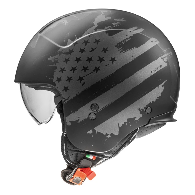 Ultimo nato è il Rocker, il mini jet pensato per i giovanissimi che ora presenta una variegata scelta di grafiche grintose e moderne. Scheda Tecnica: Materiale: termoplastico ad alta resistenza agli urti. n° di calotte: 1 imbottiture interne antibatteriche e anallergiche removibili Visierino interno a scomparsa Chiusura con cinturino micrometrico Peso : 945+/- 50gr.