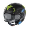 Il casco Jet Cool presenta le nuove grafiche del 2019; rimane sempre il pratico jet pensato per gli spostamenti urbani, con un’ampia visiera che protegge per interno il motociclista. Scheda Tecnica: Materiale: termoplastico ad alta resistenza agli urti. Calotta interna stampata in Eps a densità differenziata per garantire la massima protezione e assorbimento dell’impatto n° di calotte: 1 AVS: Air Ventilation System, 1 presa d’aria anteriore per garantire il mantenimento della temperatura ideale all’interno del casco. imbottiture interne antibatteriche e anallergiche completamente removibili Visiera da 2.2 mm stampata ad iniezione con materiali dalle caratteristiche ottiche superiori che garantiscono una perfetta visibilità e protezione dai raggi UV. Visierino parasole interno a scomparsa Chiusura con cinturino micrometrico Peso : 1300 +/